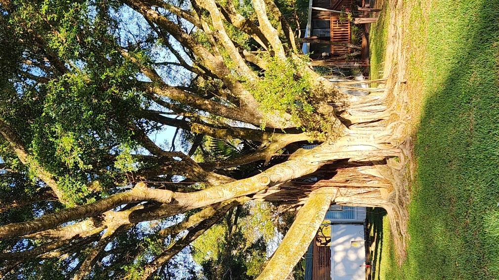 The banyan, also sometimes referred to as a strangler fig, starts life by wrapping vines around another tree, eventually killing it. The banyan reaches out spaghetti-like whiskers and builds columns, layer after layer, expanding its limbs and trunk. When an arm grows too heavy, the Banyan builds its own crutch. When a limb dies, it feeds the insects.